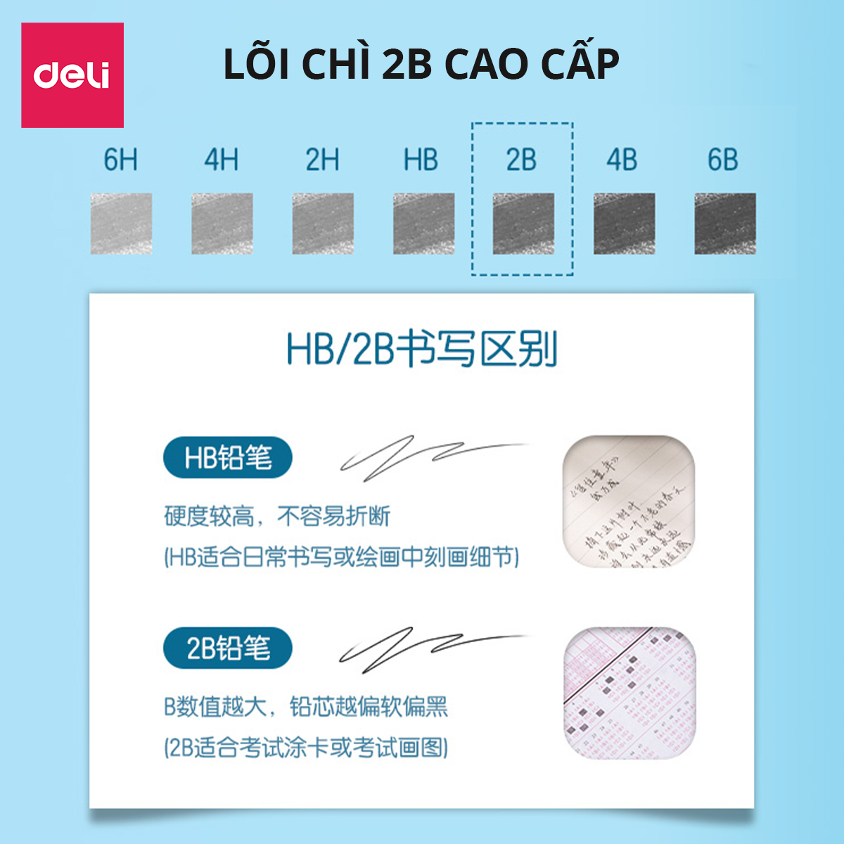 Review Bút Chì Gỗ 2B Deli Kèm Đầu Tẩy Màu Pastel – Chì Đậm An Toàn Nhạy Với Máy Chấm Thi Phù Hợp Học Sinh Văn Phòng Luyện Chữ