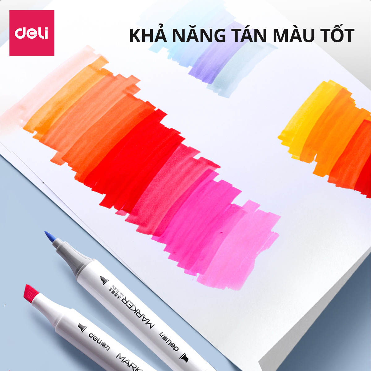Review Bút Màu Dạ Marker Màu Trắng 2 Đầu Dạng Hộp Deli – 12/24/36/48/60 Màu Sắc Tươi Sáng Tô Màu Vẽ Tranh Viết Calligraphy…