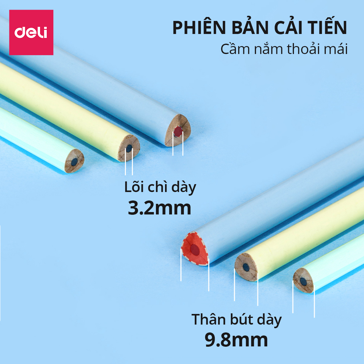 [BẢN CẢI TIẾN] BÚT CHÌ TAM GIÁC LÕI DÀY EXTRA DELI – Kèm 1 gọt chì chuyên dụng