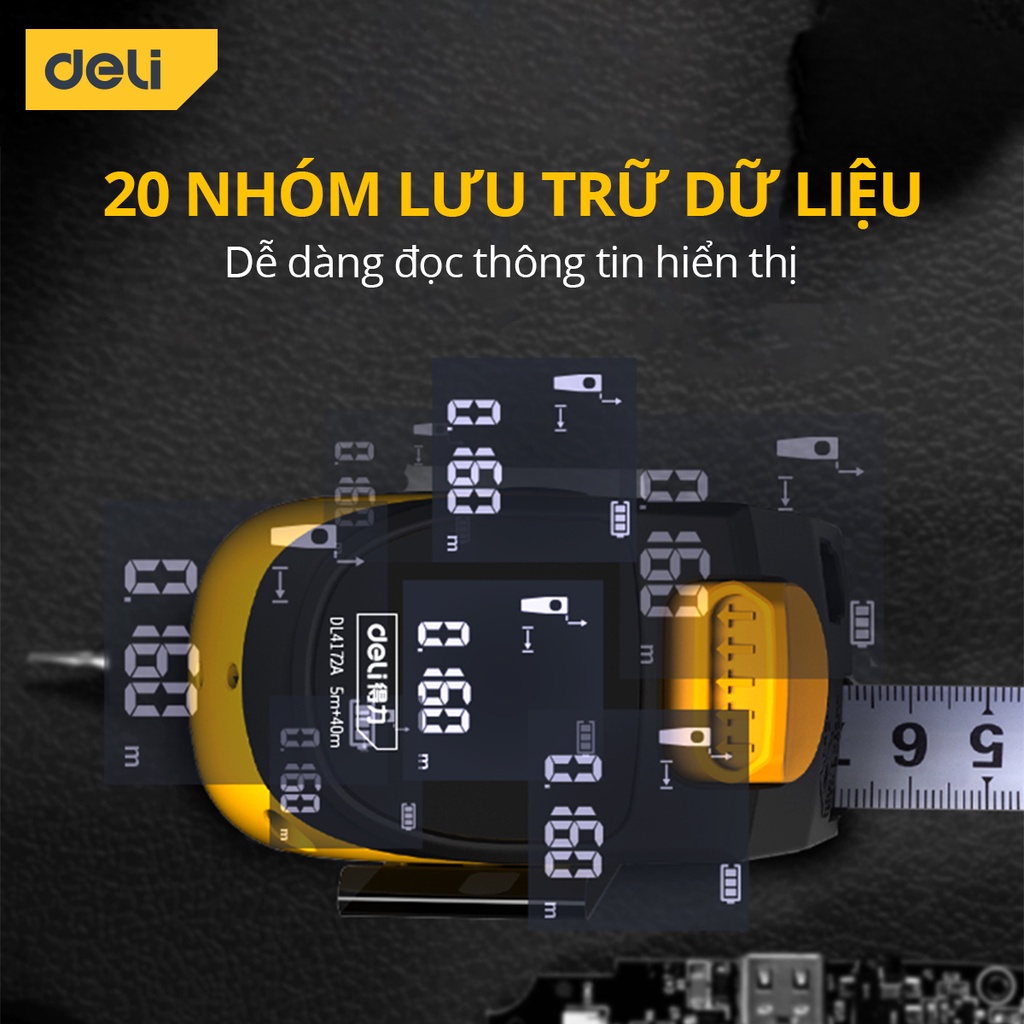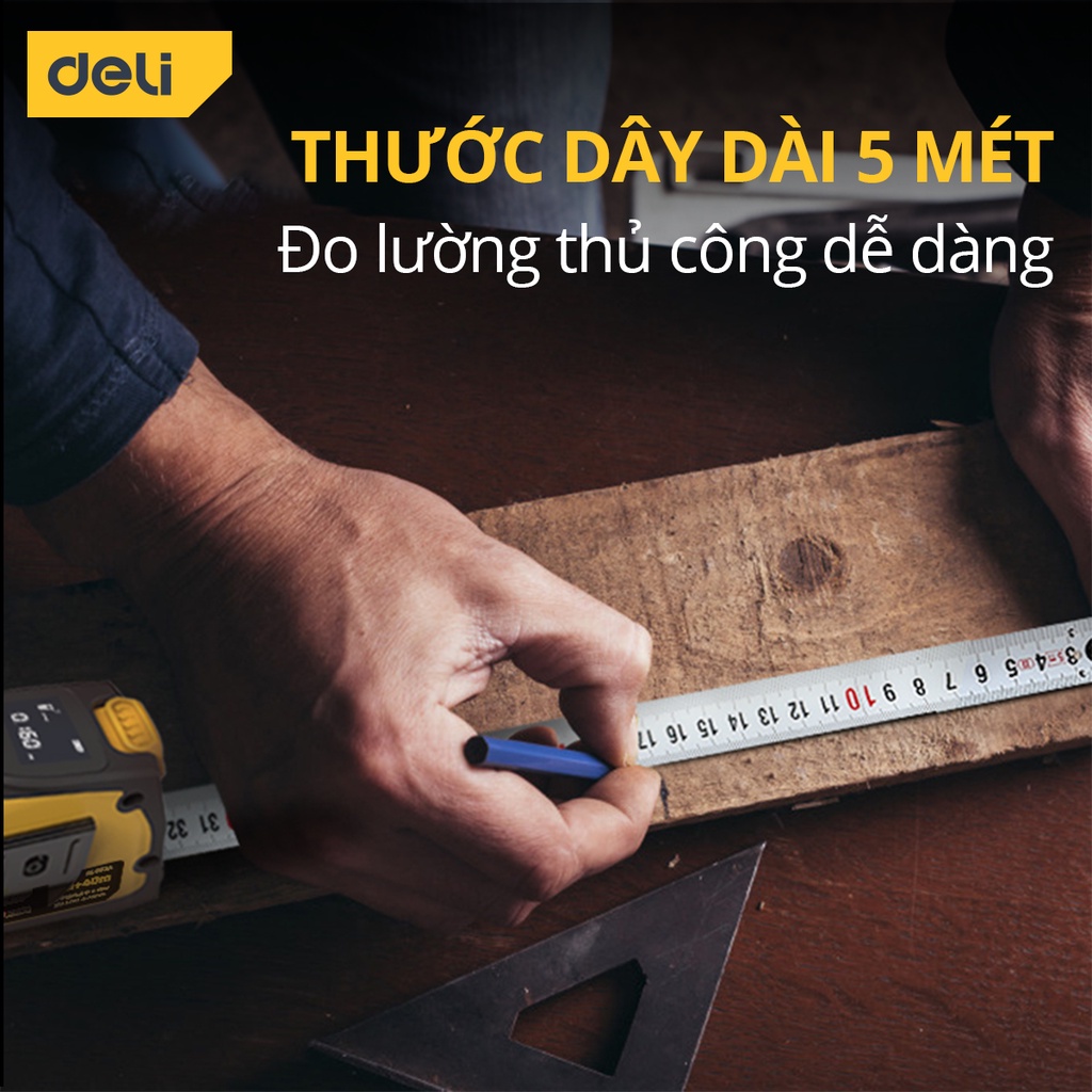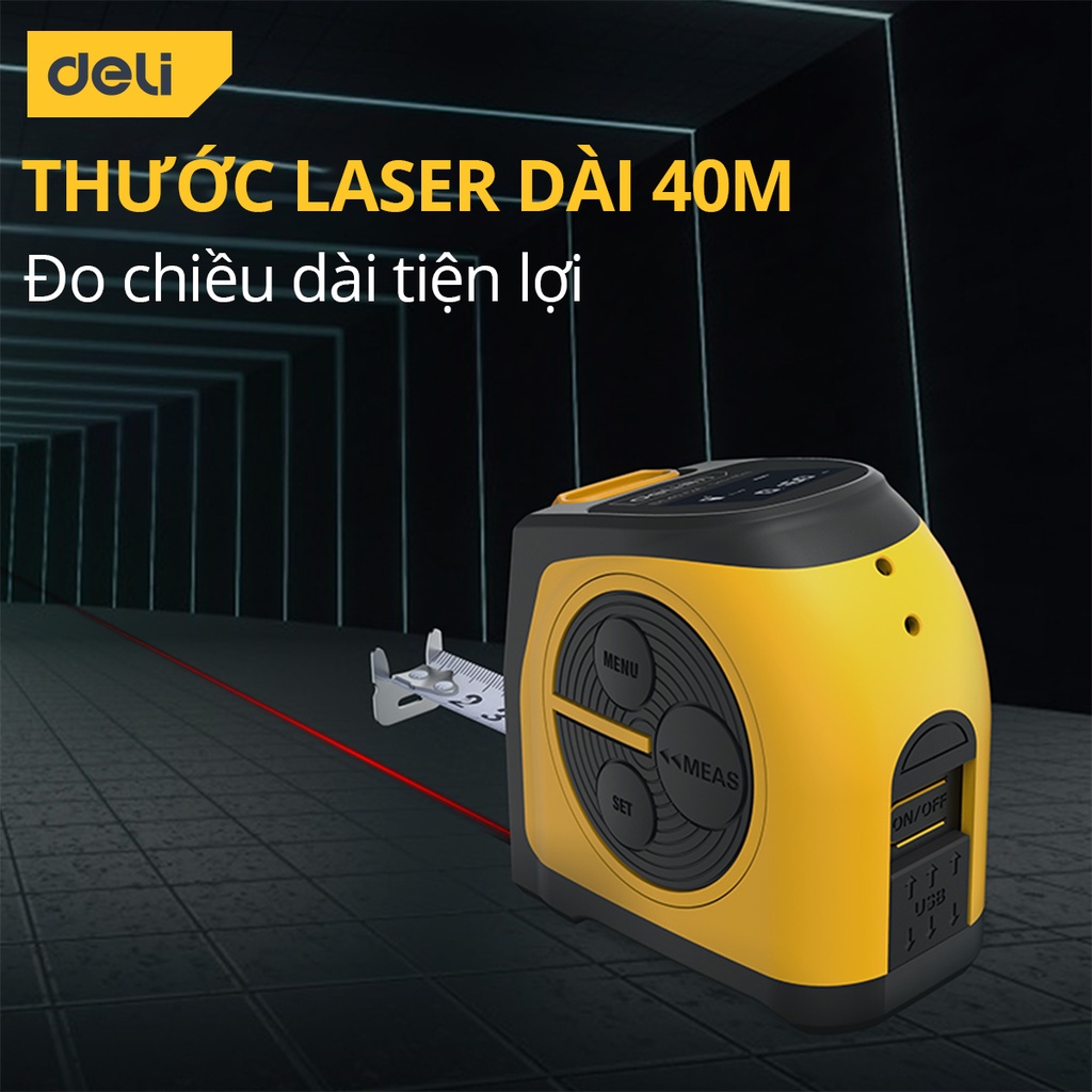 Review Thước Đo Khoảng Cách Laser Kết Hợp Thước Dây Thép Deli – Đo Laser 40m, Đo Thủ Công 5m – Màn Hình LED Hiển Thị Chính Xác