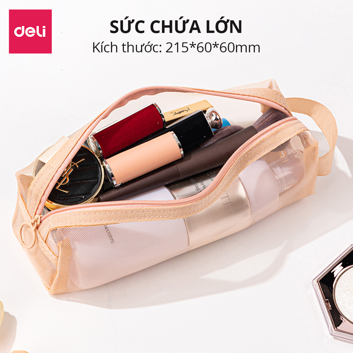 👉Tên sản phẩm: Túi Bút Đa Năng Lưới Trong Suốt Deli