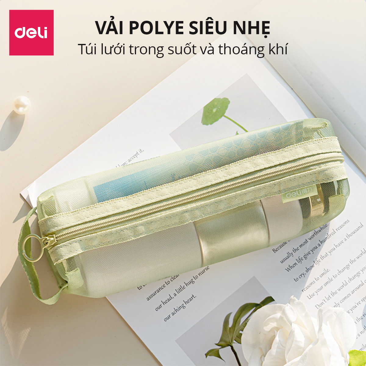 Review Túi Bút Đa Năng Bóp Viết Lưới Trong Suốt Deli – Màu Pastel Nhẹ Nhàng Sức Chứa Lớn Túi Mỹ Phẩm Du Lịch Học Sinh Văn Phòng